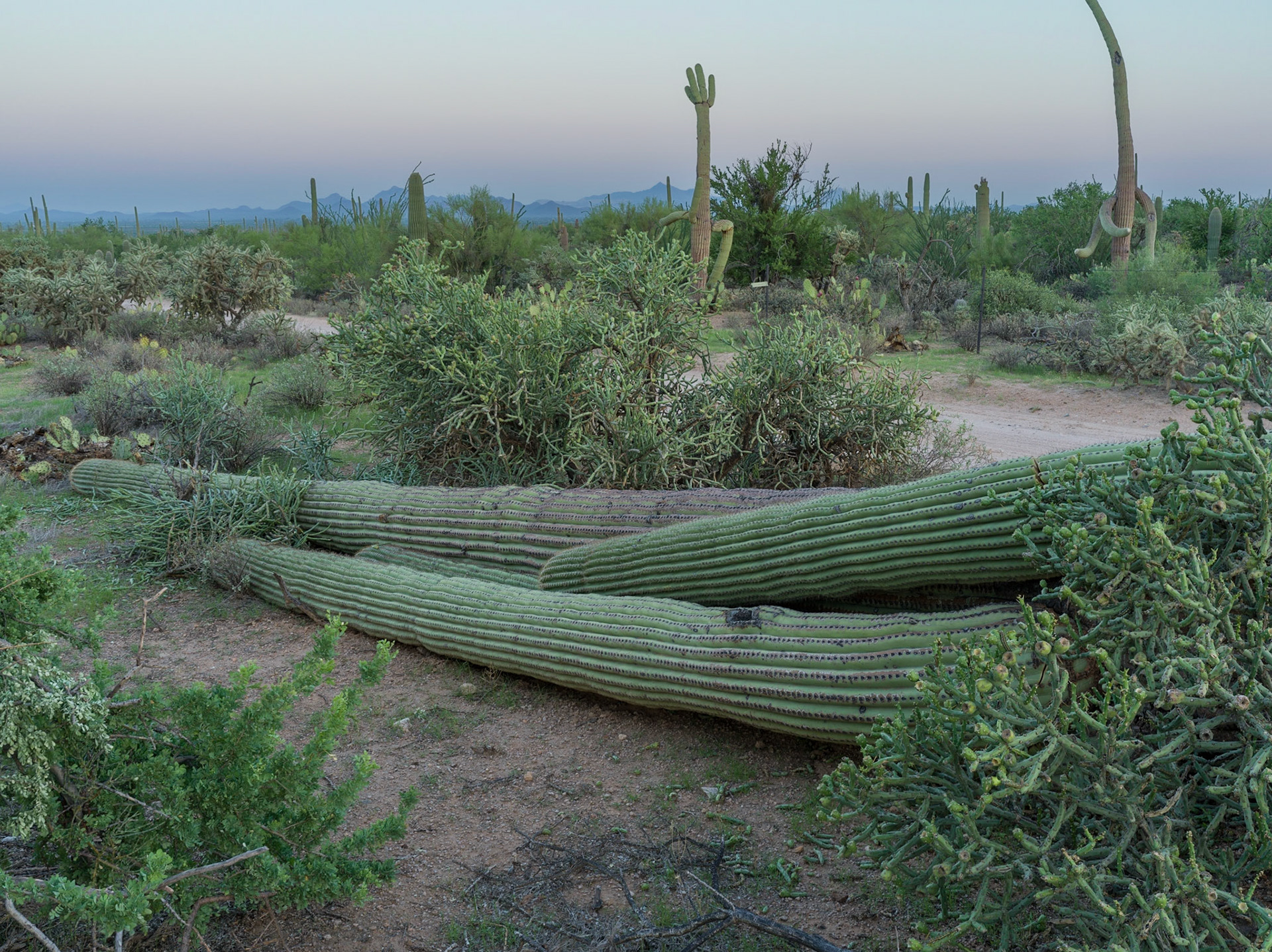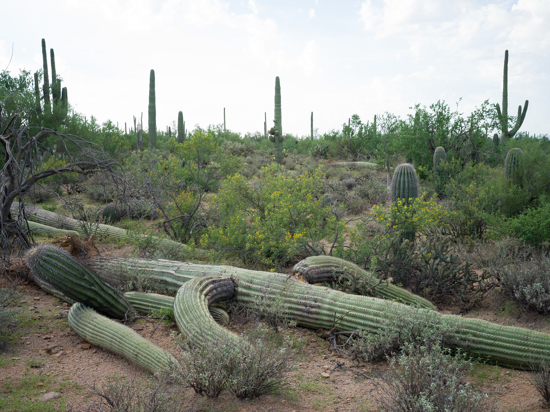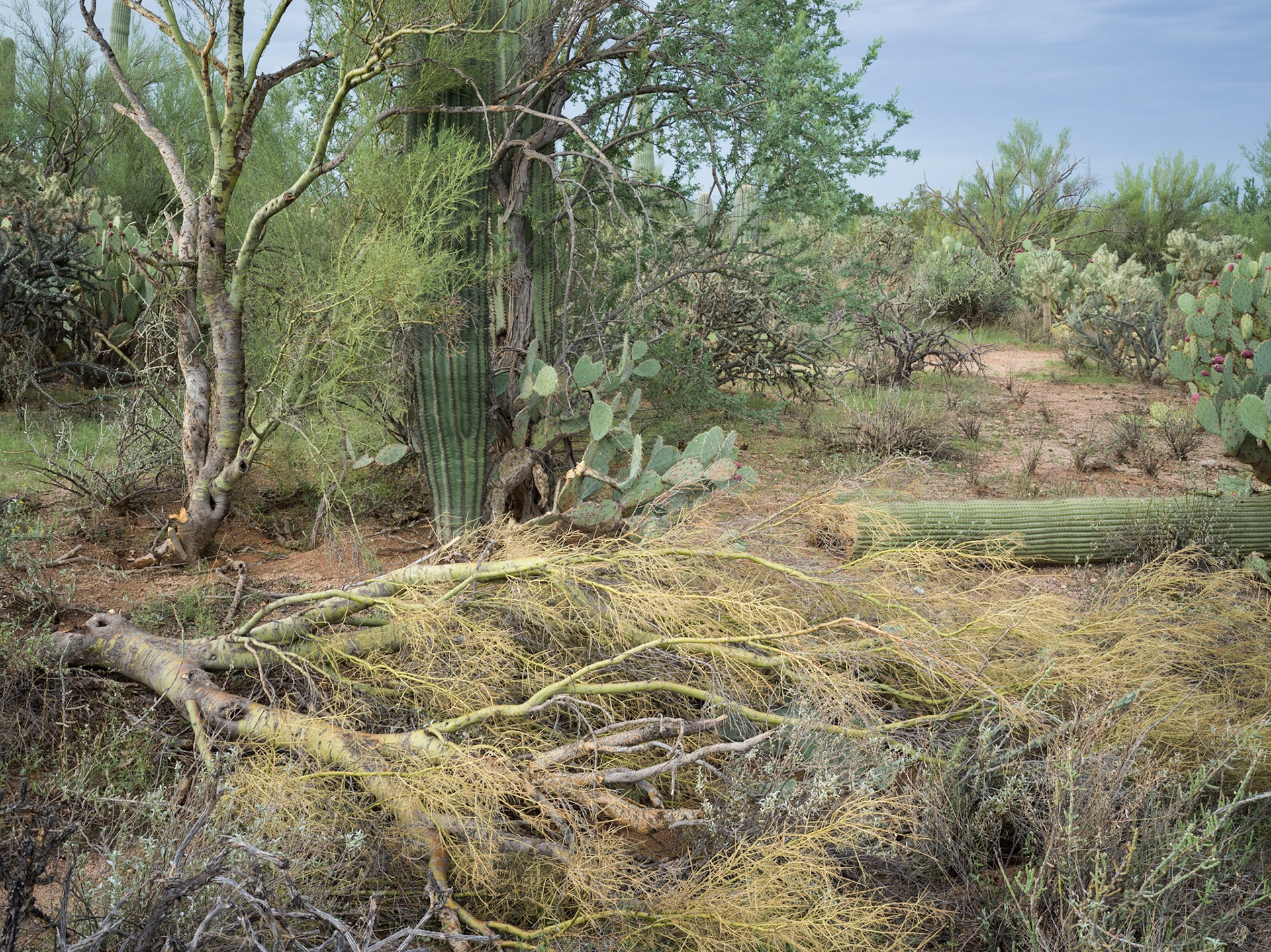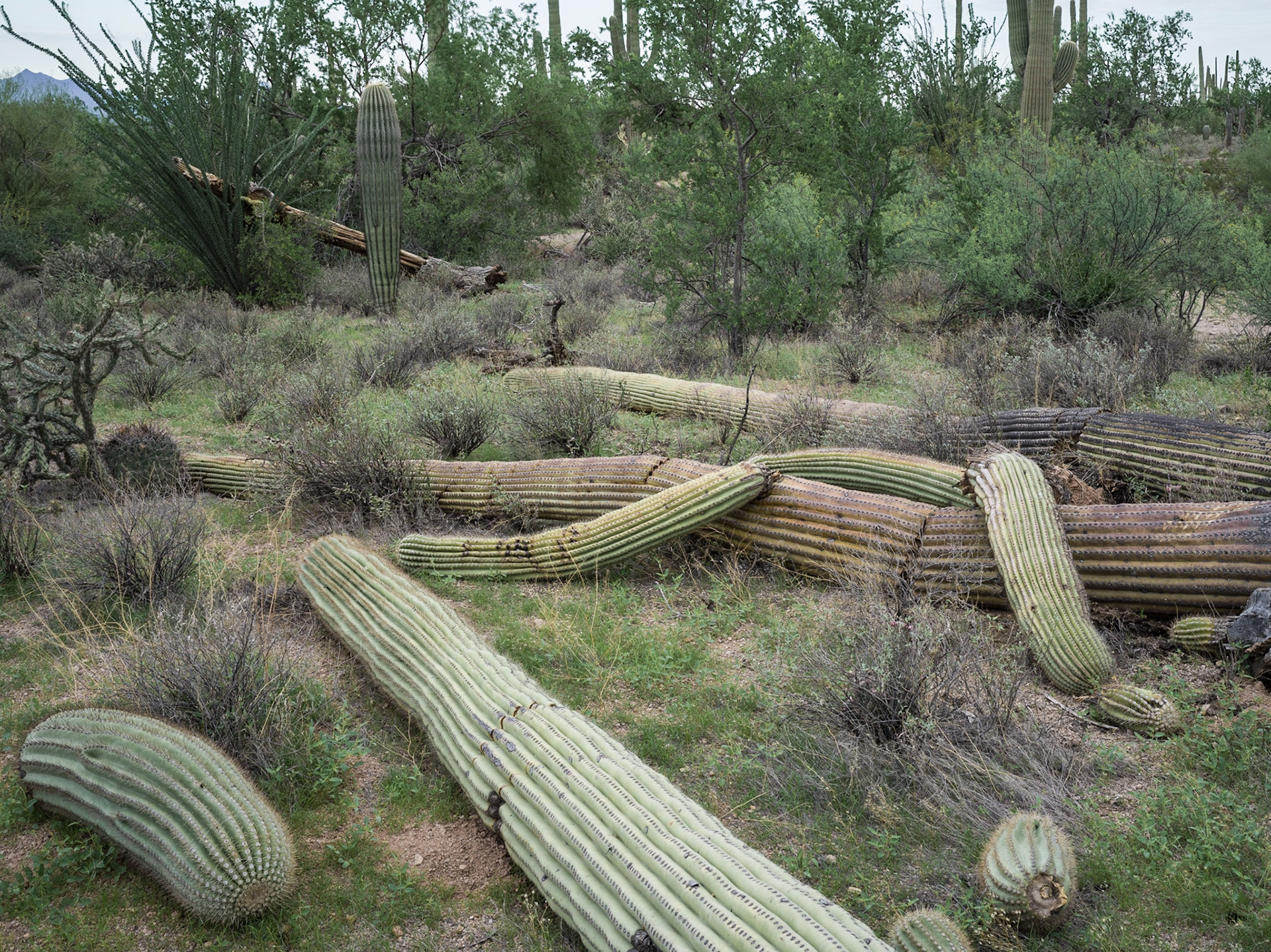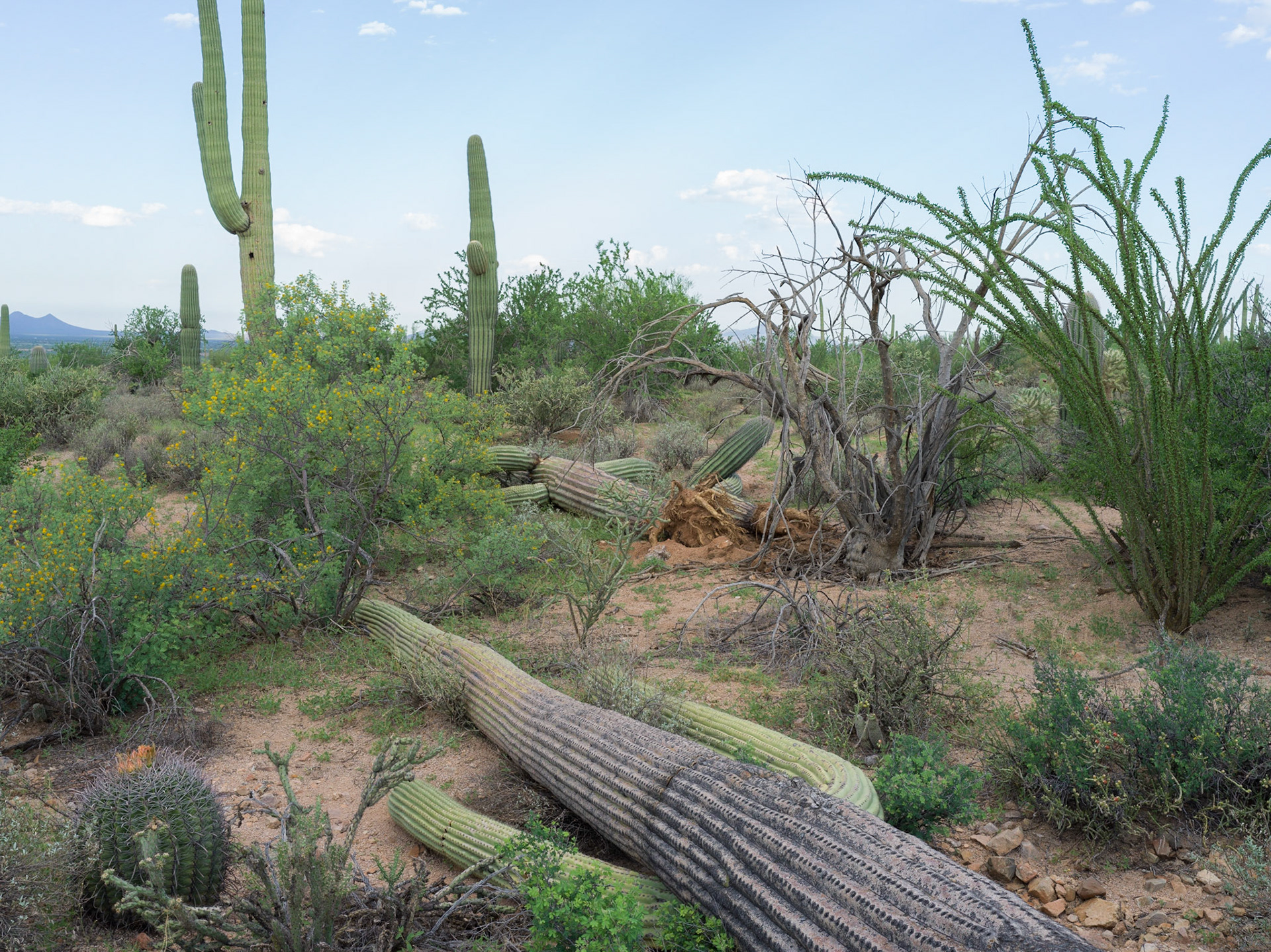 On 8-23-23 a microburst tore through Saguaro National Park-West and adjacent land flattening mature saguaros, trees and shrubs. A rare and destructive event.