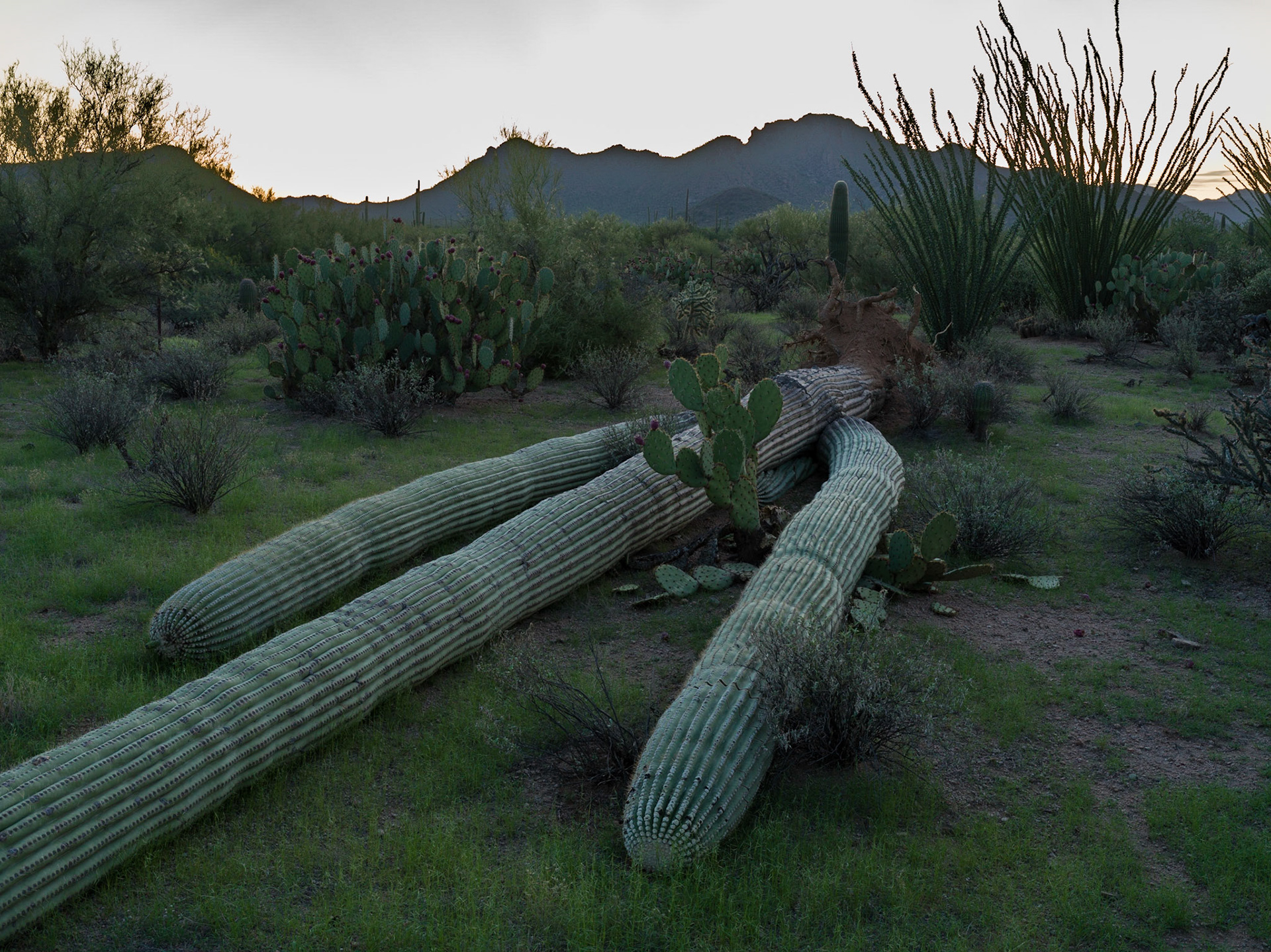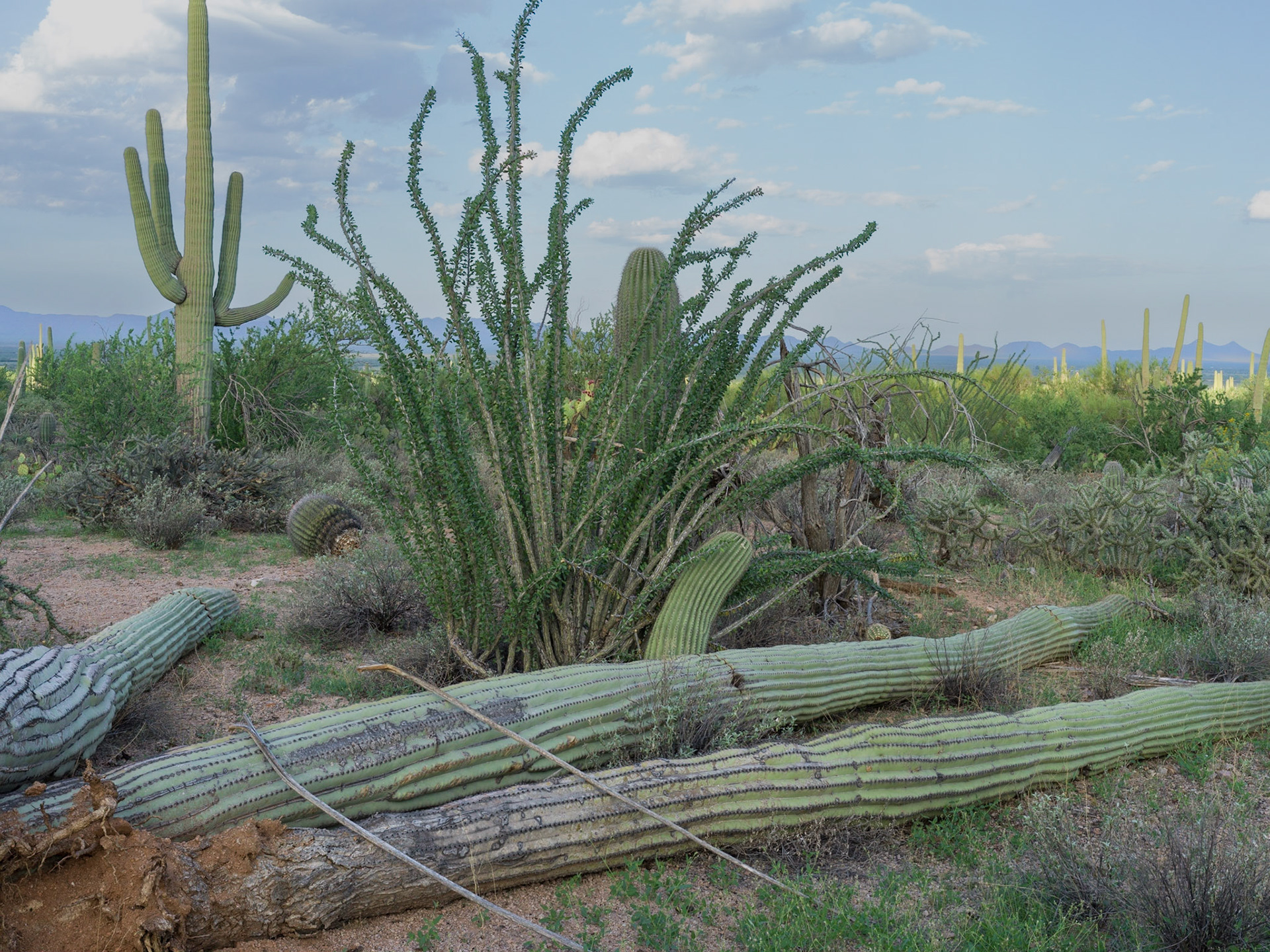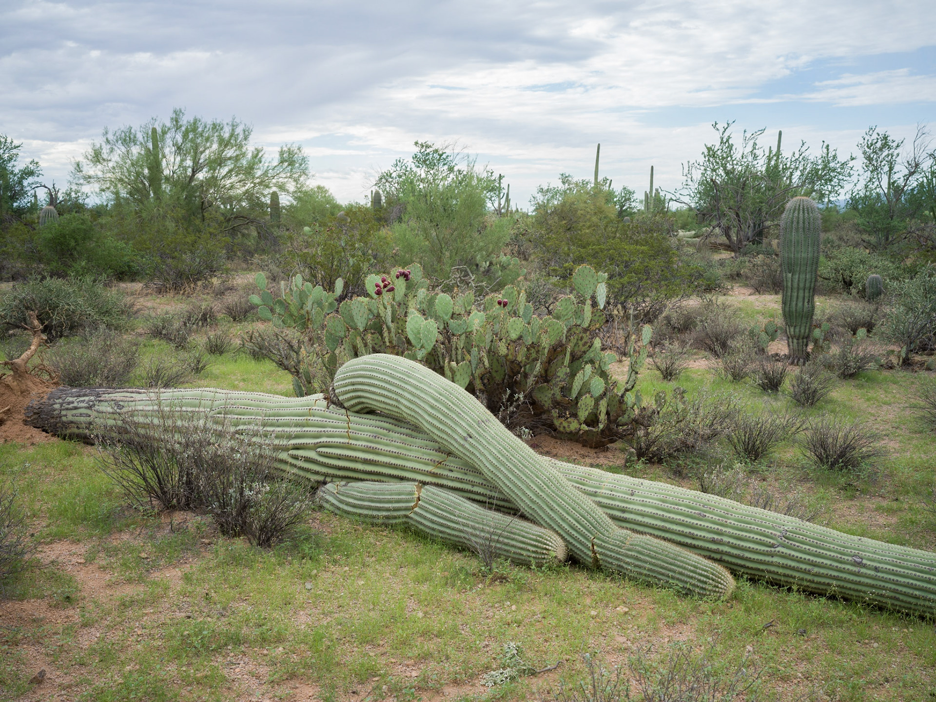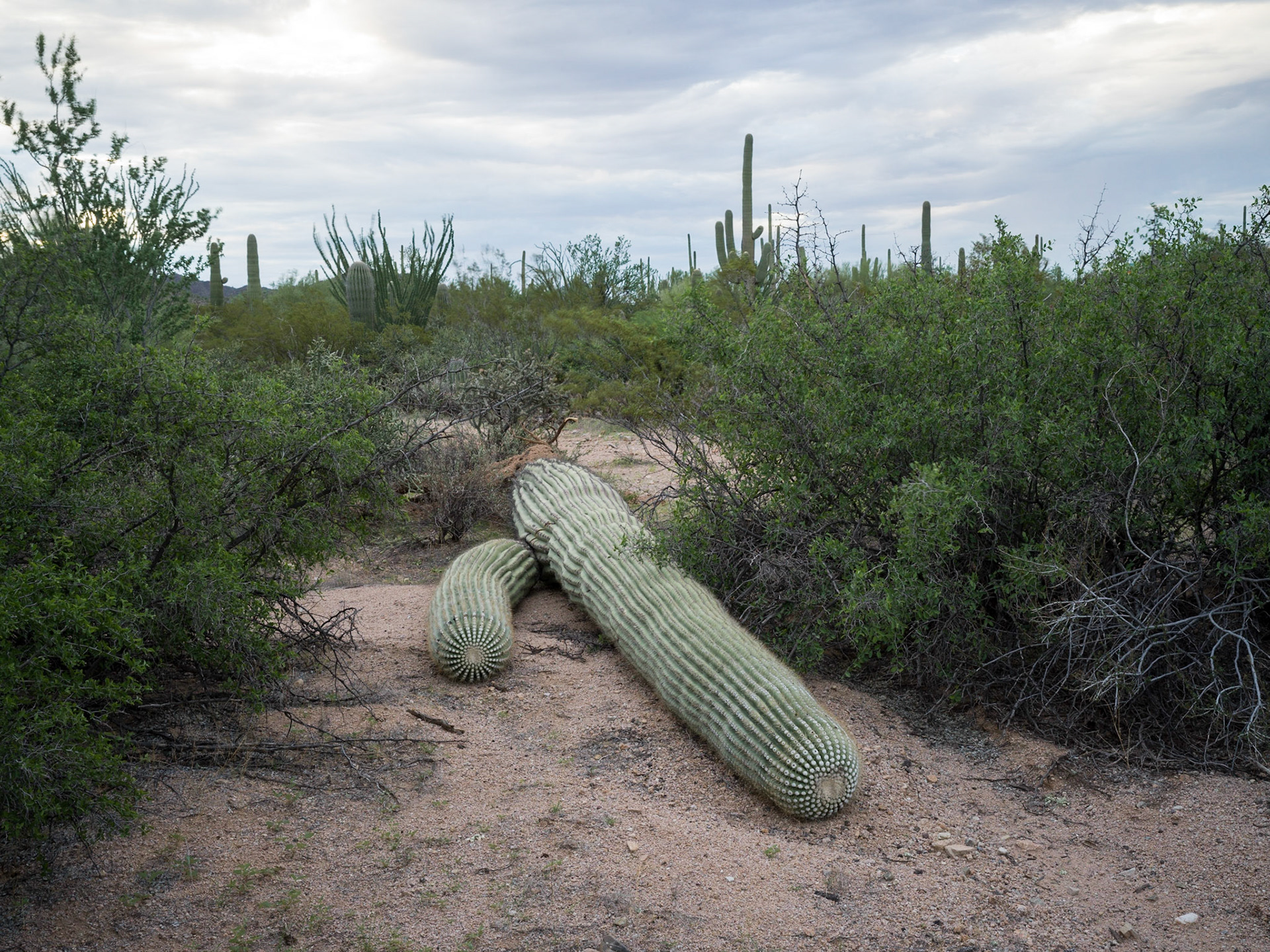 On 8-23-23 a microburst tore through Saguaro National Park-West and adjacent land flattening mature saguaros, trees and shrubs. A rare and destructive event.