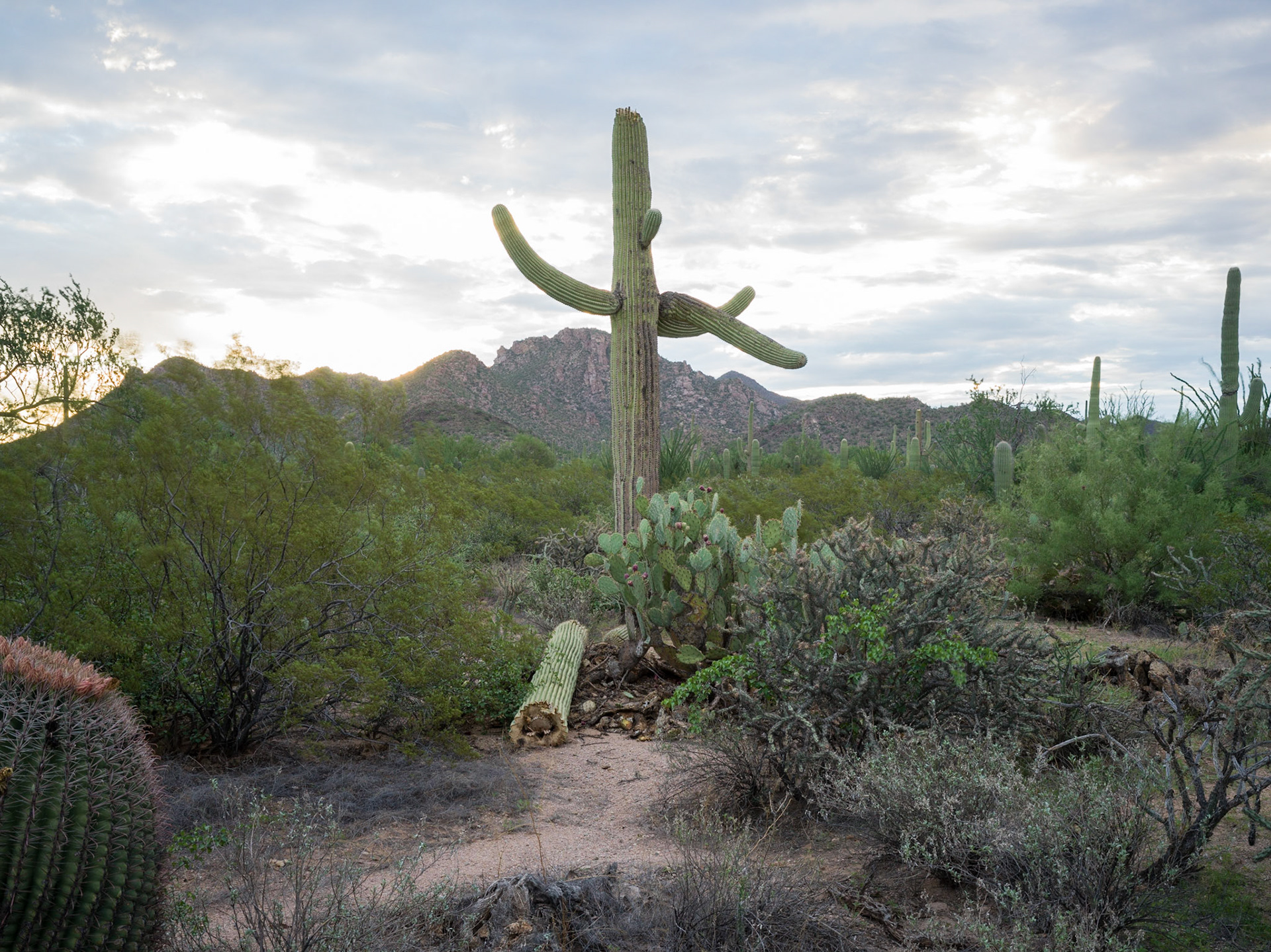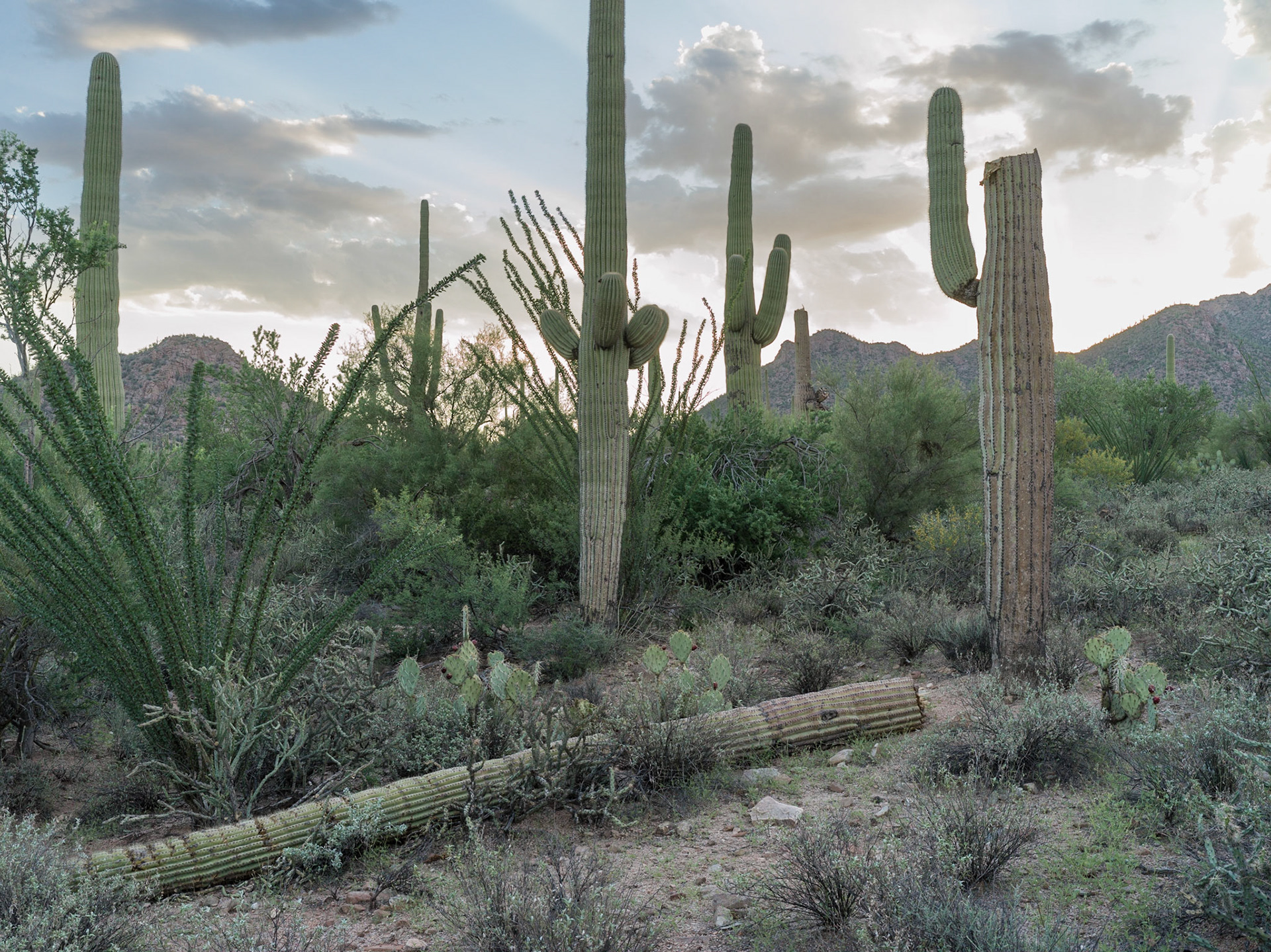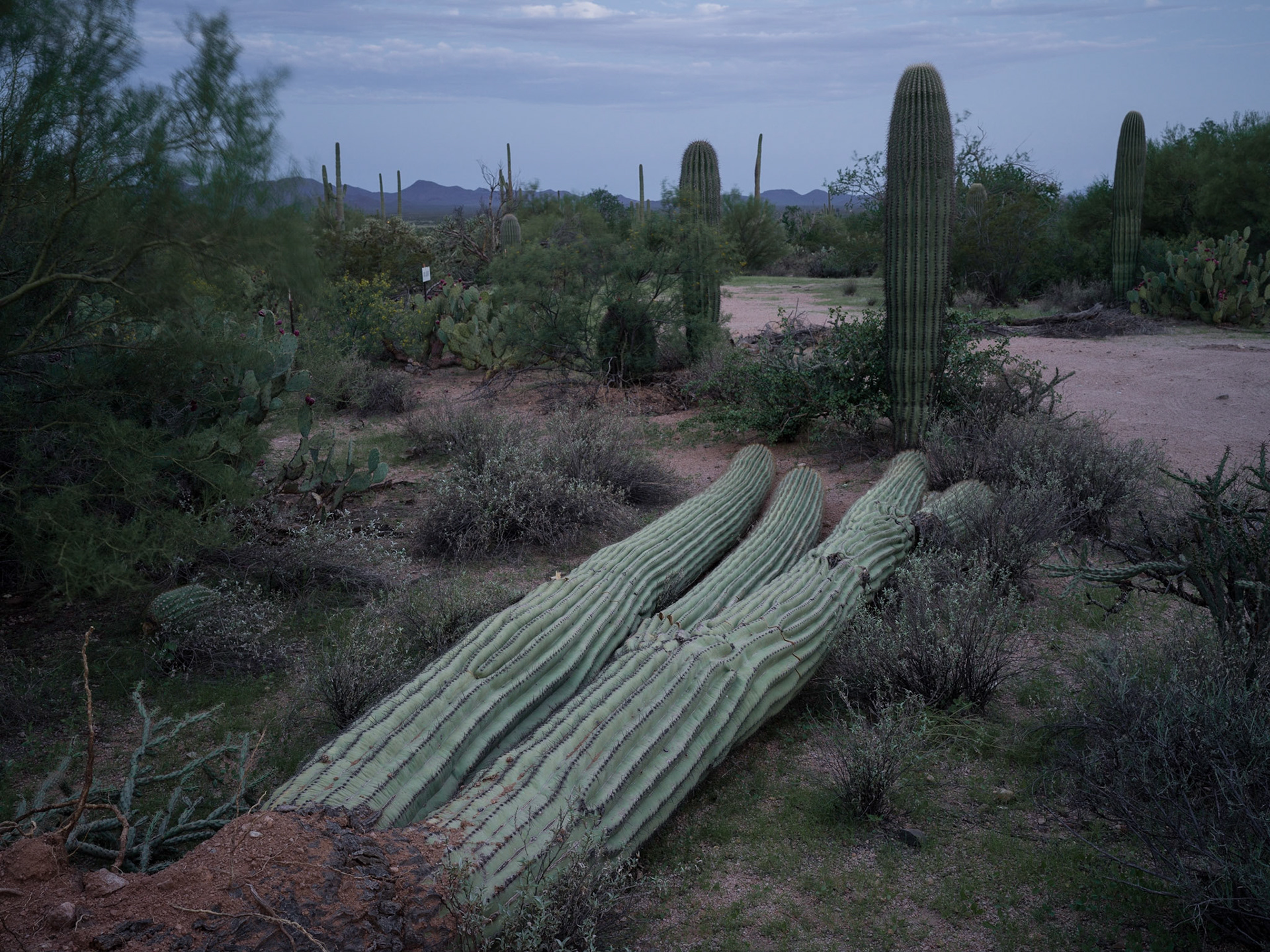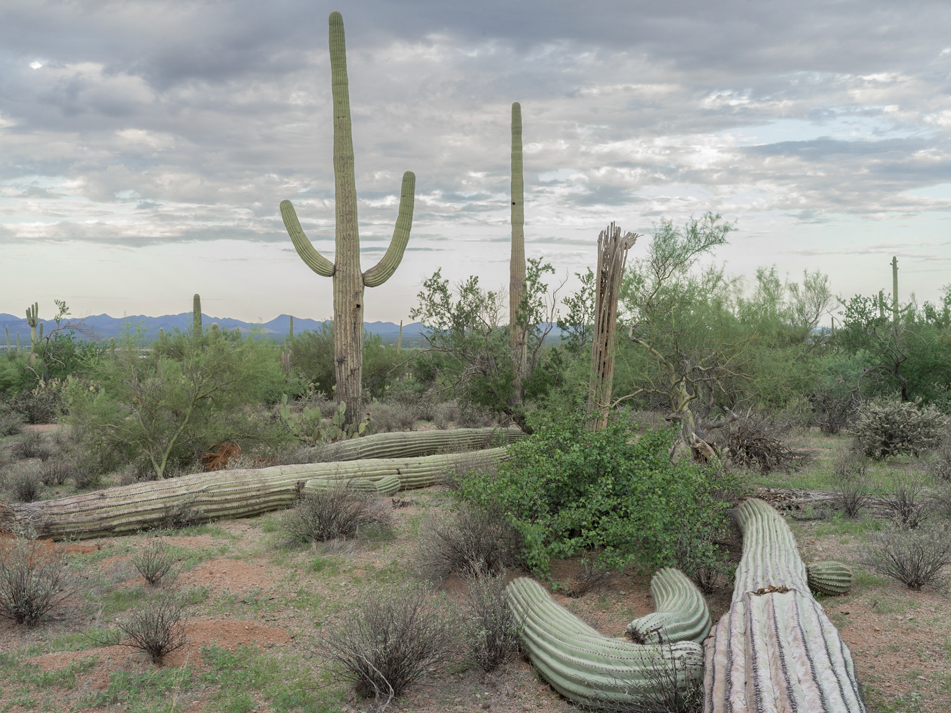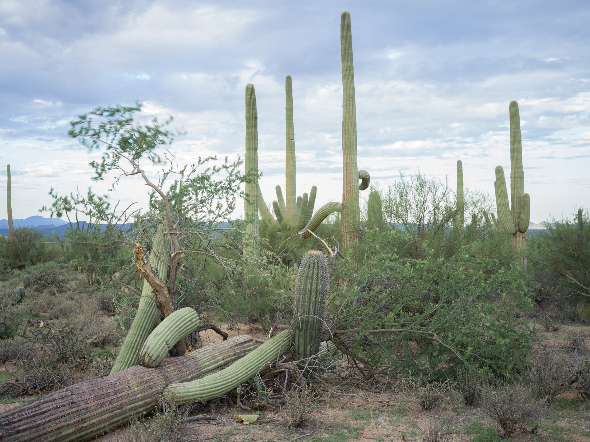 On 8-23-23 a microburst tore through Saguaro National Park-West and adjacent land flattening mature saguaros, trees and shrubs. A rare and destructive event.